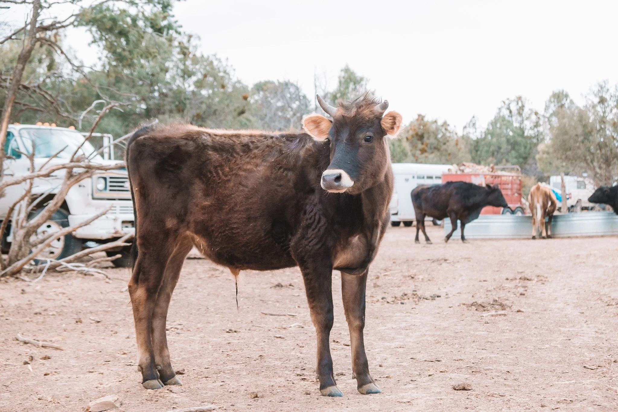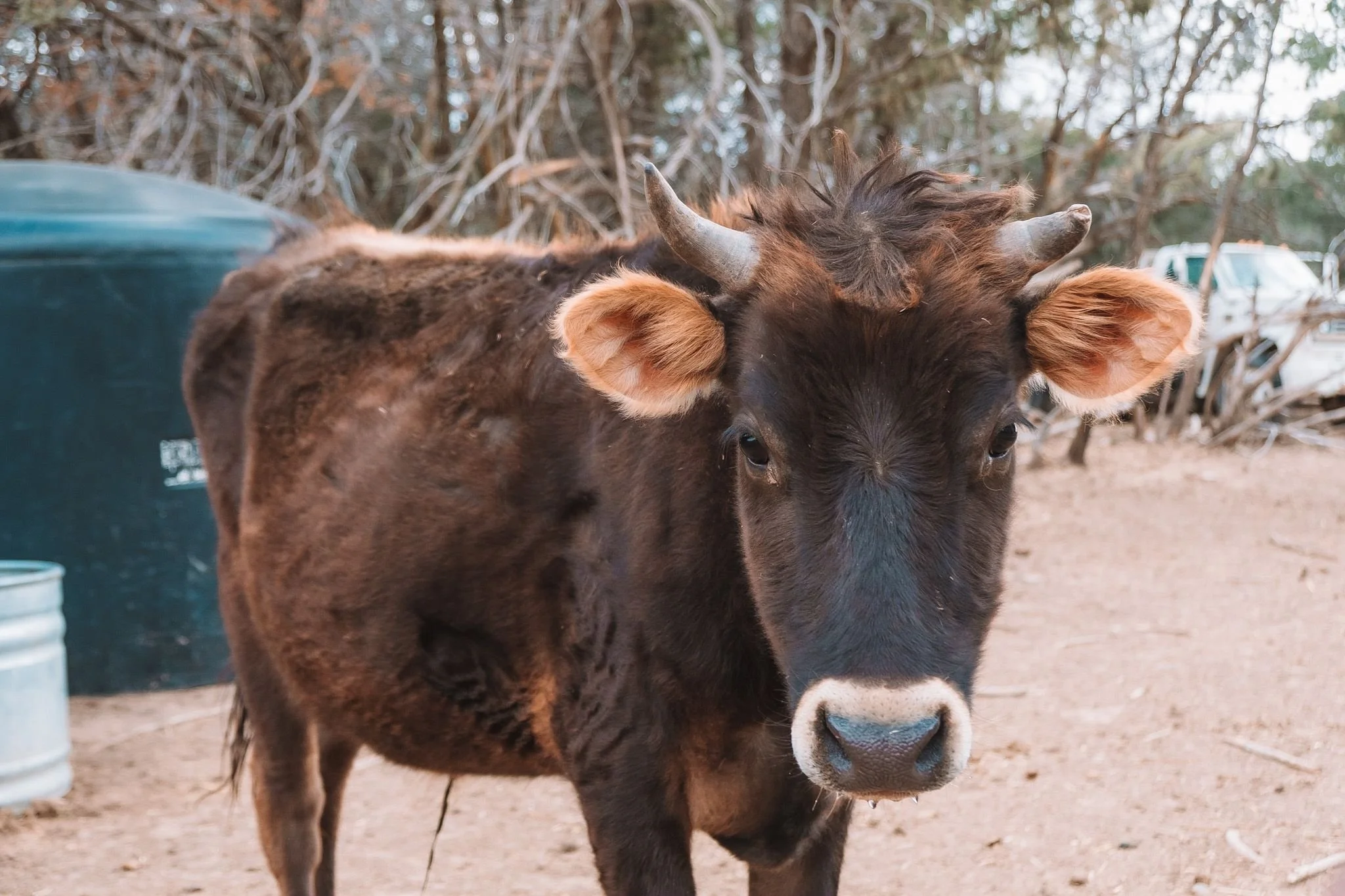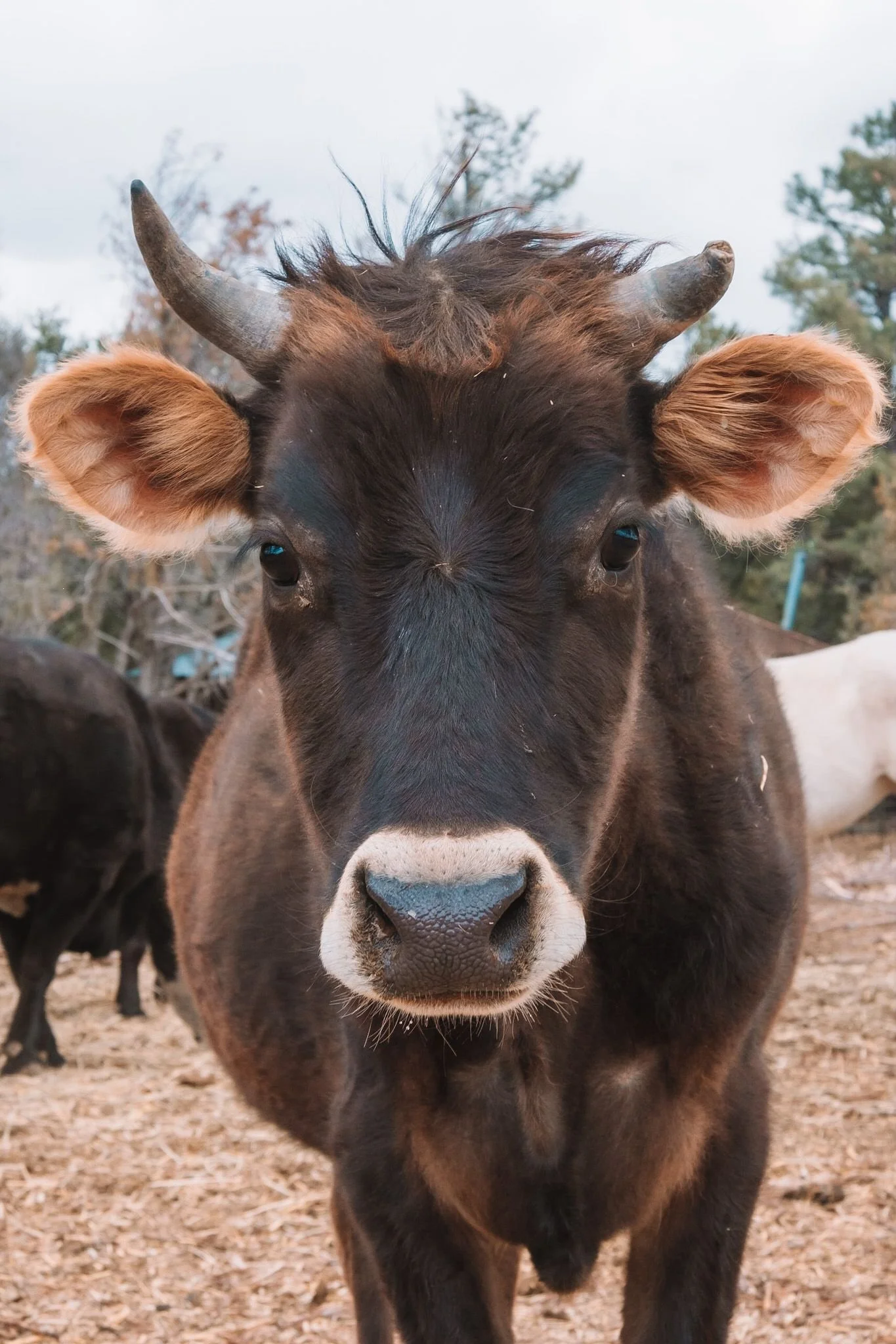 Copperhead is a beautiful Jersey cow (now a steer) that we got in February of 2021. He was slated to be a veal calf. Veal is the meat from a calf or young beef animal that is raised until about 16 to 18 weeks of age. Male dairy calves are used in the veal industry because male calves are of little or no value to the dairy farmer. What a sad statistic. This handsome young man came to us with two others named Spur and Jersey when they were just a couple of months old. We named this fine boy “Copperhead” because of the beautiful copper coloring on his ears, head and back.